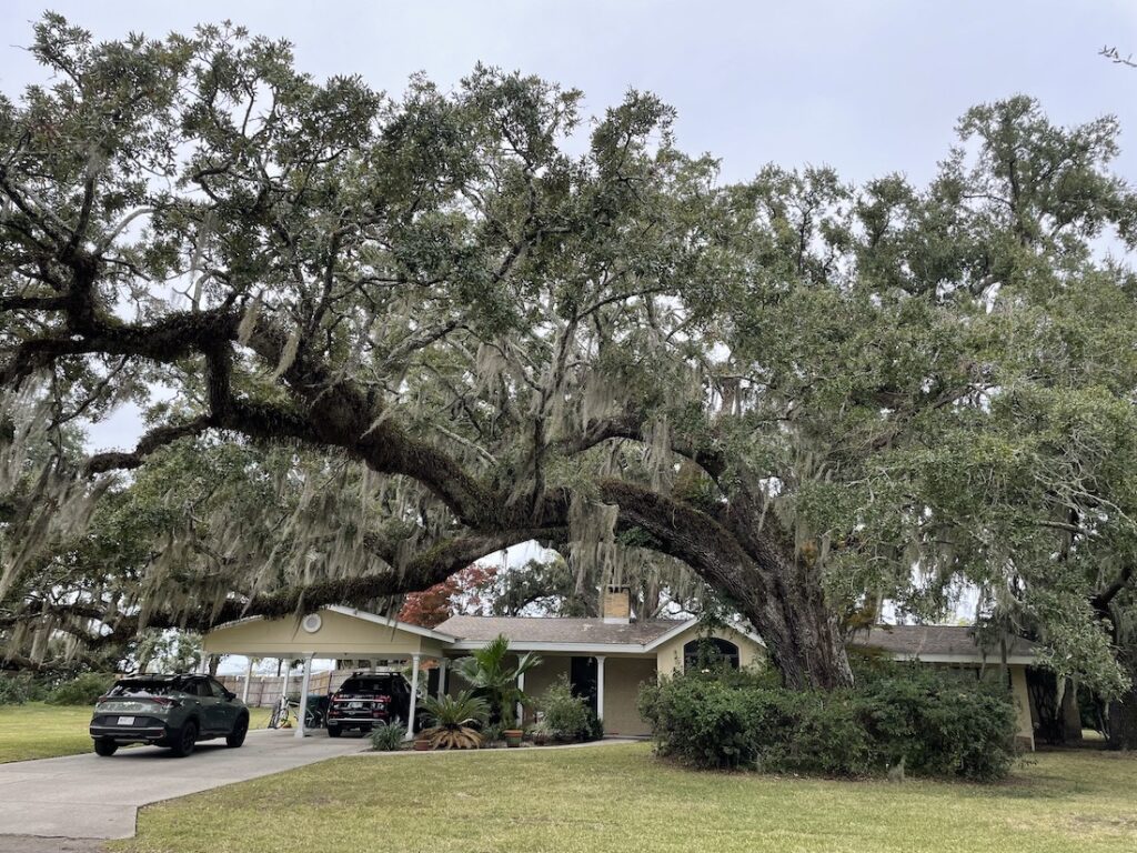There are many empty lots all along the Mississippi Gulf Coast thanks to Hurricane Katrina and its predecessors. At one time all of the lots had buildings on them including stately homes. The giant southern live oak and magnolia trees were part of the property. When the structures were destroyed, many of the trees remained.