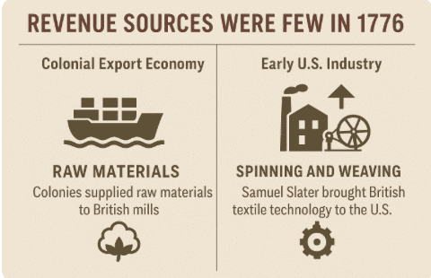 This act of industrial espionage catalyzed the rise of textile manufacturing in New England and marked the beginning of a new revenue stream for the young republic. With domestic production came jobs, economic activity, and—critically—taxable commerce.