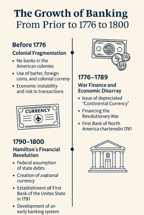 The Growth of Banking: From Colonial Fragmentation to National Finance (Pre-1776 to 1800)